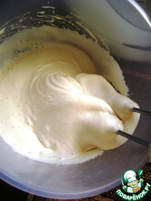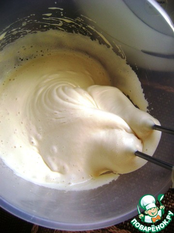 Дважды просеять муку. Взбить яйца с сахаром в пышную пену.