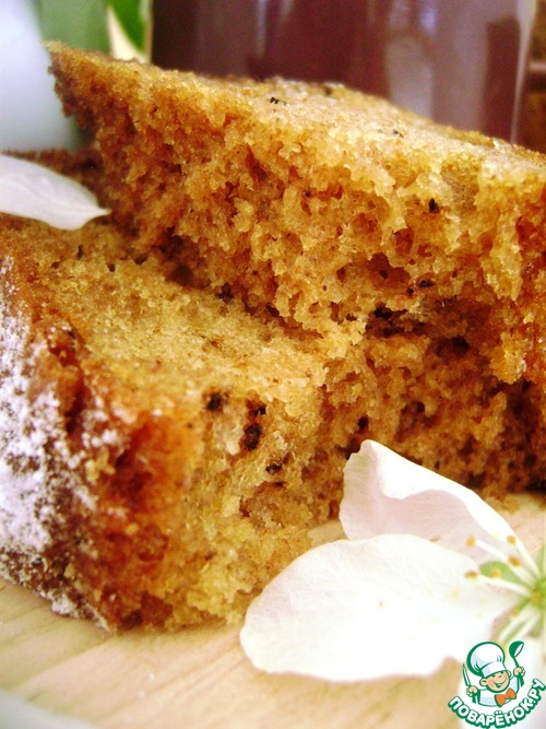 Всыпать в пену муку частями, добавляя йогурт. Работать миксером на малой скорости. Добавить растертый с мелкую пыль ароматизированный чай. Он может быть любым, с вашим любимым ароматом. У меня листовой черный чай с тонким и нежным ароматом гвоздики, лаванды и незабудки. Чудесно подчеркивает медовый аромат.