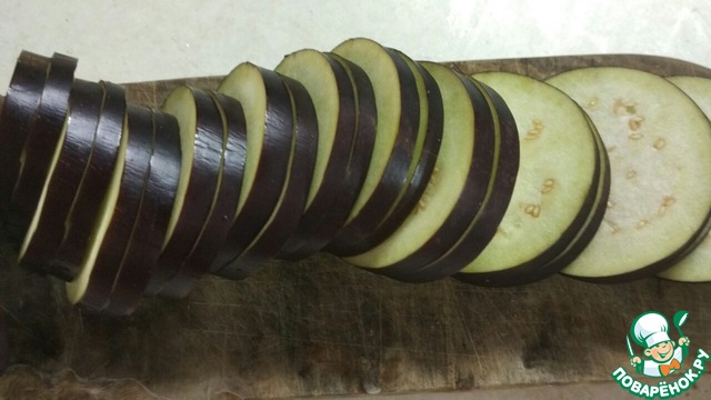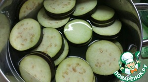 • Солим воду (по вкусу), замачиваем нарезанные баклажаны (минут на 15)
