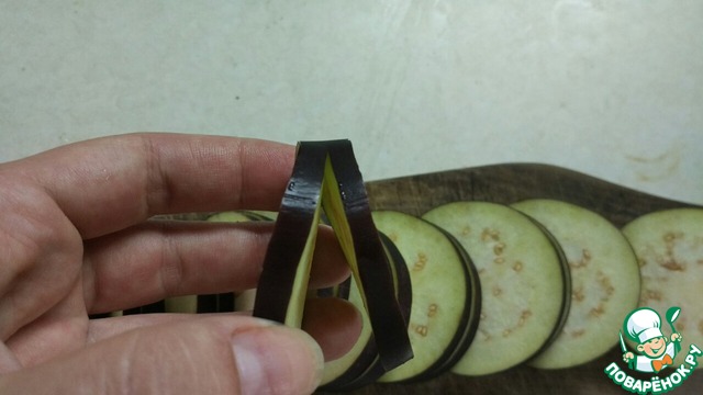 • Нарезаем его кружочками, чтобы получились как-будто створки ракушки