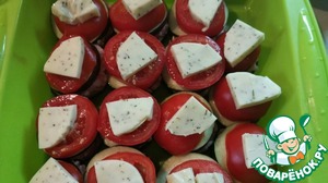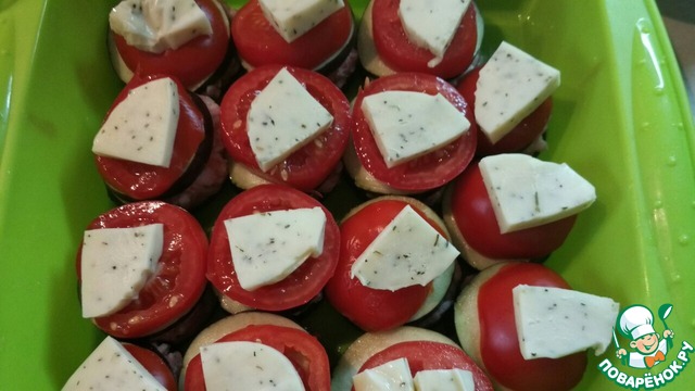 • Сверху укладываем кусочки моцареллы (у меня моцарелла с базиликом)