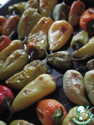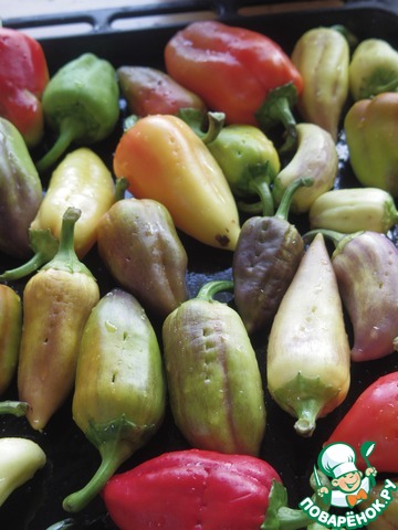 В оригинальном рецепте может и было "Жарить", но я же ленивая - упростила! Так одним махом все перцы в духовку - красота