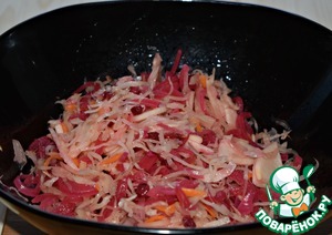 Тут совсем всё просто. Свежую капусту нашинковать. Слегка помять её руками. -