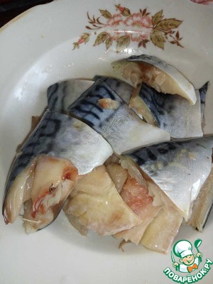 Разморозить, помыть, выпотрошить скумбрию, вытащить хребет, удалить косточки и плавники (делаем филе), режем на кусочки, примерно, 2-3 см, кому как удобнее
