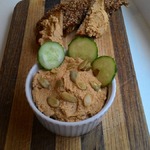 Далее я соус выложила в 2 баночки (или в соусник) и убрала на 1 час в холодильник. Перед подачей украшаем дип тыквенными семечками и мелко нарезанным зелёным луком.