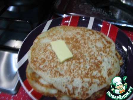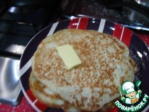 По готовности, на каждый горячий блин кладем кусочек сливочного масла (можно спред).