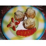 Из фольги делаем плотные тарелочки, оставляя один конец, чтобы его можно было сначала плотно накрыть, а для подрумянивания открыть.