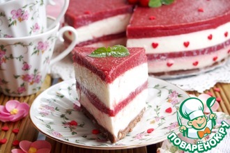 Выложить в разъемную форму (22 см), утрамбовать лопаткой и поставить в холодильник на 30 минут, чтобы торт схватился.