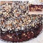 В горячем молоке растопить темный шоколад. Вынуть форму с тортом из холодильника, полить шоколадом, посыпать для украшения орехами и кокосовой стружкой. Дать торту пропитаться, вынуть из разъемной формы и можно пить чай. Приятного аппетита!