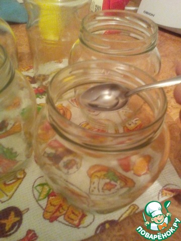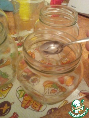 Банки я брала емкостью 0.7л. Можно и литровые, и больше, как кому будет удобнее. На дно баночек, я добавила по половинке кофейной ложки уксуса. Скажем так, для уверенности, так как подвала у меня нет
