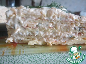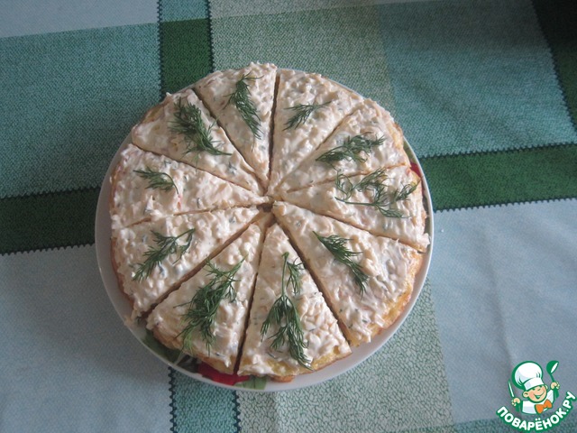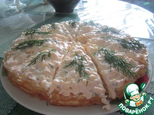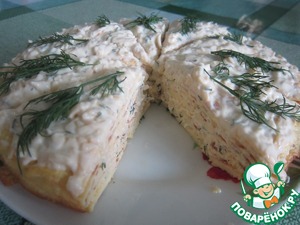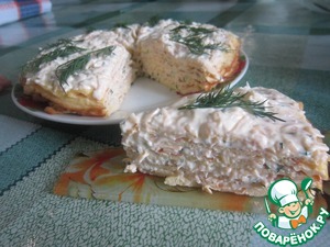 Очень замечательная и быстрая закуска!!! Гости, которые пробовали этот торт, просили добавки и рецепт))) Предупреждаю, блюдо калорийное, но ооооооочень вкусное!