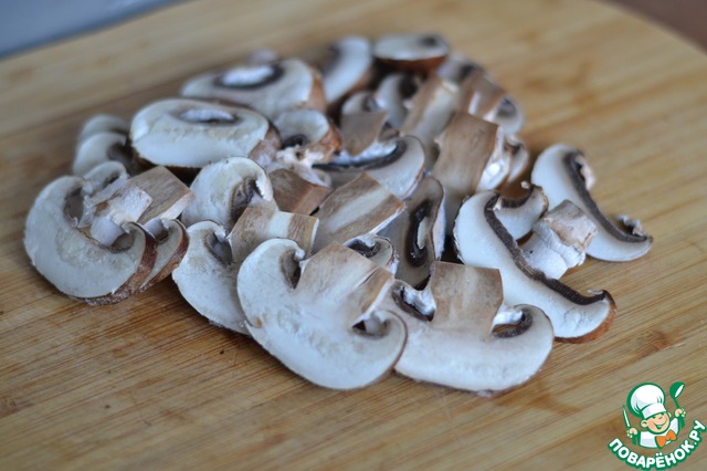 • Шампиньоны нарежте на кружочки.