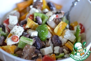 • В миске смешать фасоль, болгарский и чили перцы, шампиньоны, сыр, тимьян.