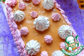 Оставшиеся безе не едим, а ломаем на части и заполняем ими "пробелы" между нашими пирожными. После этого смазываем все тонким слоем крема, выравниваем, так сказать.