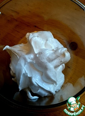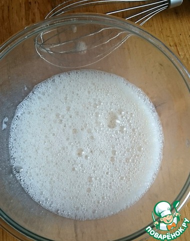 Этап первый - безе. Взбейте 2 белка и 1/2 стакана сахара до появления пены, примерно 2 минуты. -