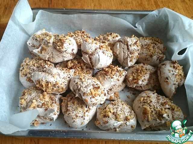 Вот наши безе. Оставшиеся желтки мы тут же использовали для печенья "Шоколадные подушечки" (http://www.povareno k.ru/recipes/show/11 8397/), оно печется 10 мин.