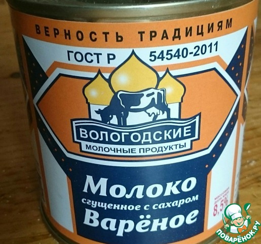 - Молоко сгущенное (будет нужна вареная сгущенка, можно сварить её предварительно, можно купить в магазине уже готовую.) — 1 стак.