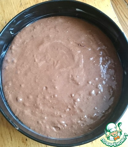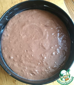 Выложите тесто в форму, разровняйте. Тесто жидкое.