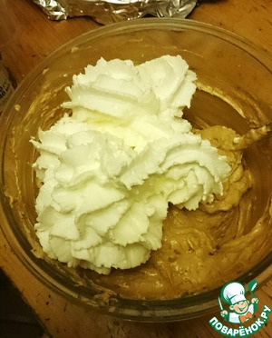 Я добавляла уже готовые взбитые сливки, в последнее время мне не везёт со сливками для взбивания, то ли я виновата, то ли их стали разбавлять на заводах - не взбиваются, и все тут...