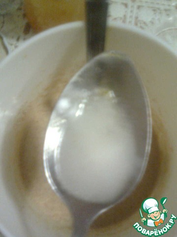 - Сода гашеная уксусом (соду на кончике столовой ложки погасила домашним яблочным уксусом)