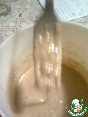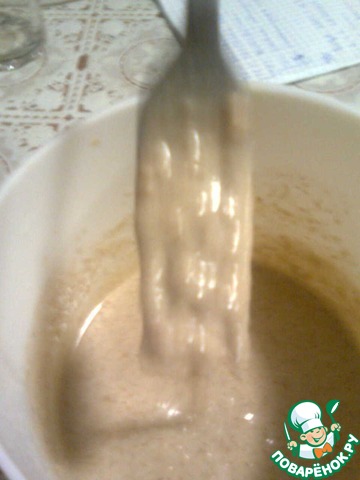 Тесто получается, как на блины. С вилки смесь не капает, а стекает тонкой струйкой. Если у вас не так, то добавьте чуть воды и дайте тесту еще постоять. -