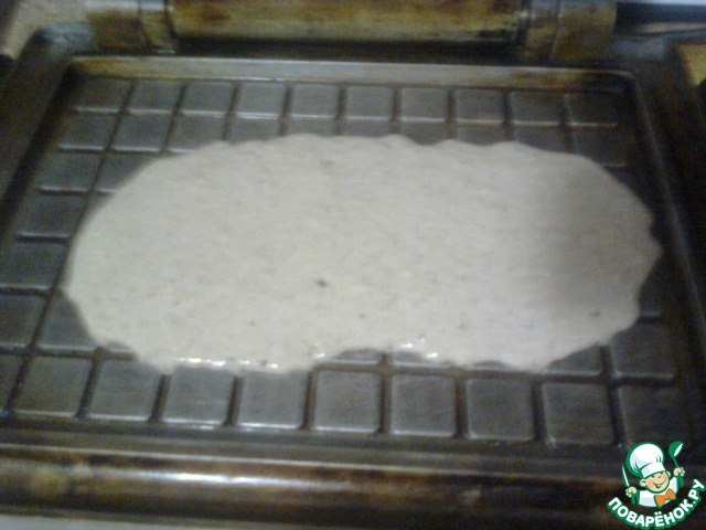 Пока тесто отдыхает, греем вафельницу, прогреваем ее очень хорошо, чтобы вафельки были ровно загорелые и хрустящие.