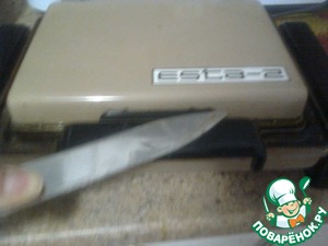 Отключаем из розетки вафельницу, если у вас, как у меня, нет терморегулятора. Смазываем масляной ваткой поверхность снизу и сверху.