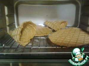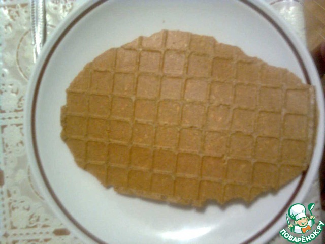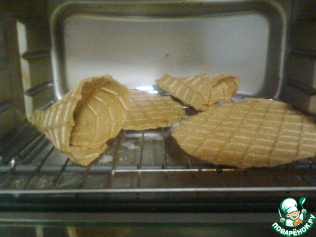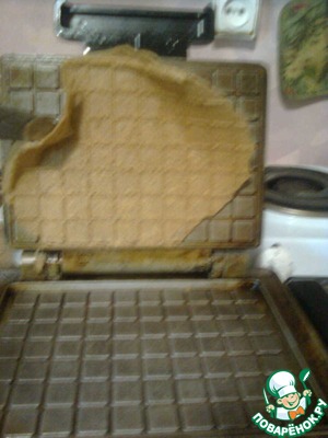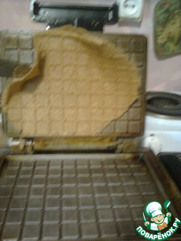 Из нашего теста вафельки очень хрустящие, свернуть их румяными трудно. Лучше сформировать заготовки, а потом их досушить в духовке. -