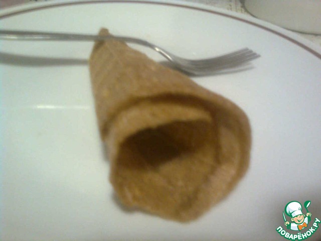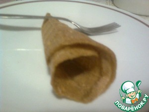 Формируем быстро рожок или трубочку. Фиксируем вилкой.