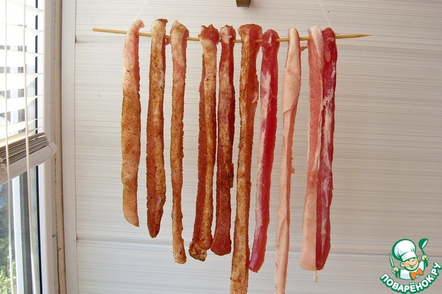 Часть полосочек я натёр магазинной смесью перцев. А остальное мясо оставил как есть - для сравнения.