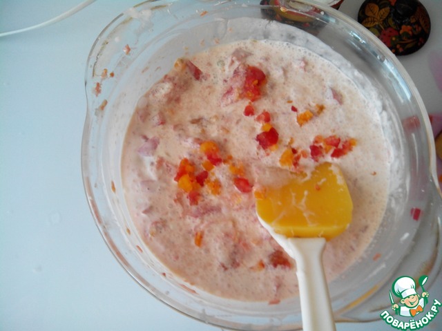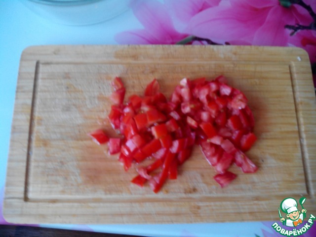 • В миску выложить майонез, помидоры, соль и приправы на ваш вкус. Перемешать.