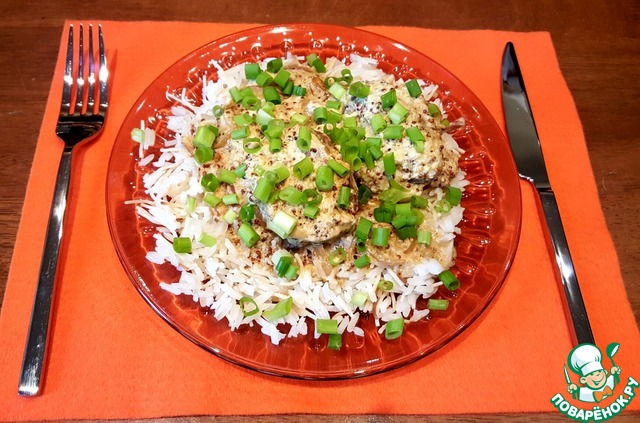 Сверху выложить сметанно-горчичную смесь. Накрыть крышкой и тушить на малом огне 20 минут.