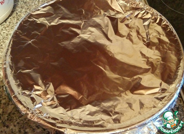 Выложить тесто в форму, смазанную маслом. Распределить по поверхности, формируя бортики. Убрать в морозилку на 30 минут. |