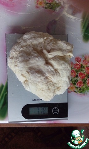 Все хорошо перемешиваем, и постепенно добавляем муку. и в итоге замащиваем тесто. у меня получилось 778 г.