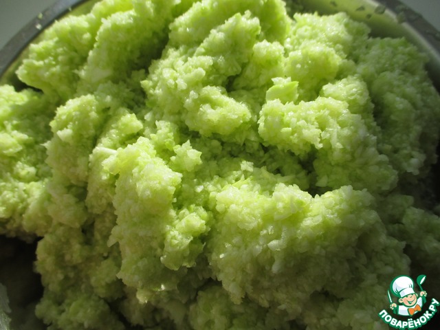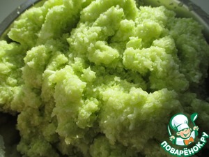 Кабачки помыть, почистить и измельчить любым удобным способом. Я это делала в кухонном процессоре.
