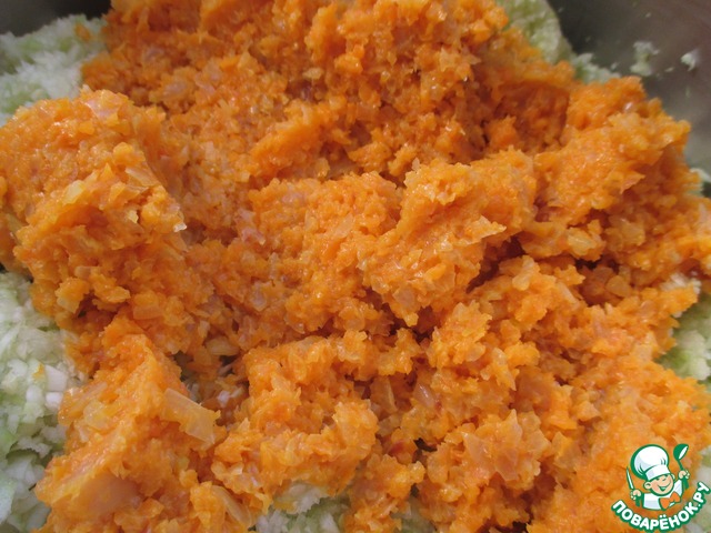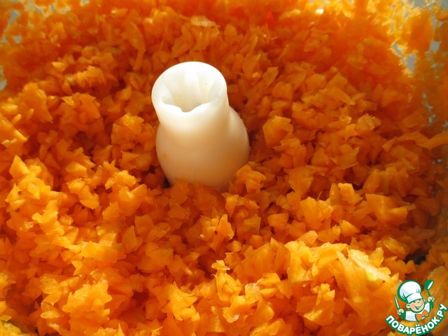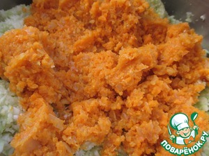 Смешать морковь и лук и измельчить в блендере, и добавить к кабачкам..
