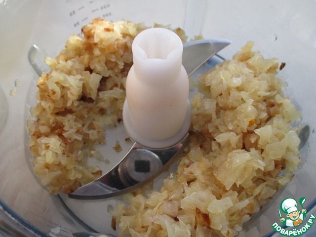 Лук почистить и так же измельчить.