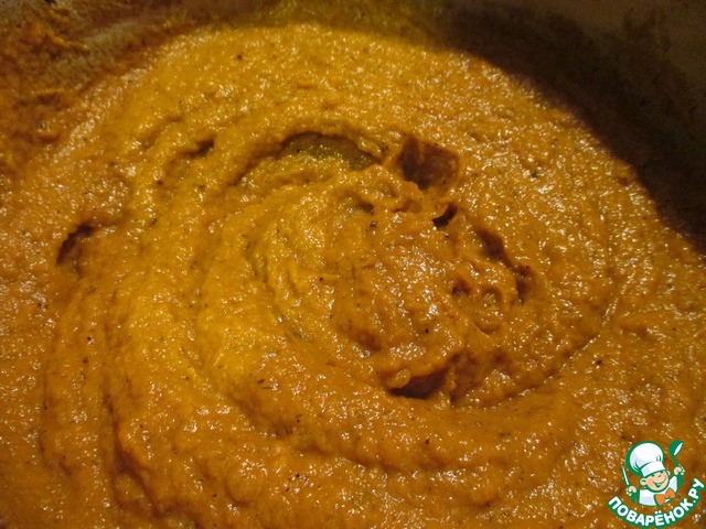 Пюрировать овощи погружным блендером.