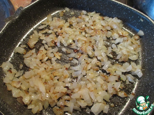 Лук порезать мелко и обжарить.