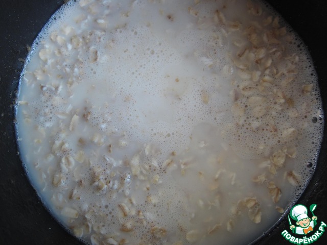Высыпаем хлопья в кастрюлю, добавляем холодное молоко, щепотку соли и варим 5мин. на ср. огне, часто помешивая ложкой