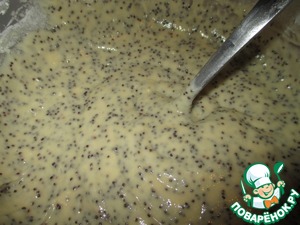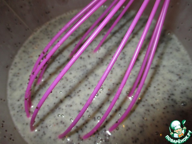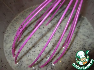 Вбить в кефирную массу два яйца и всыпать мак. Размешать венчиком. -