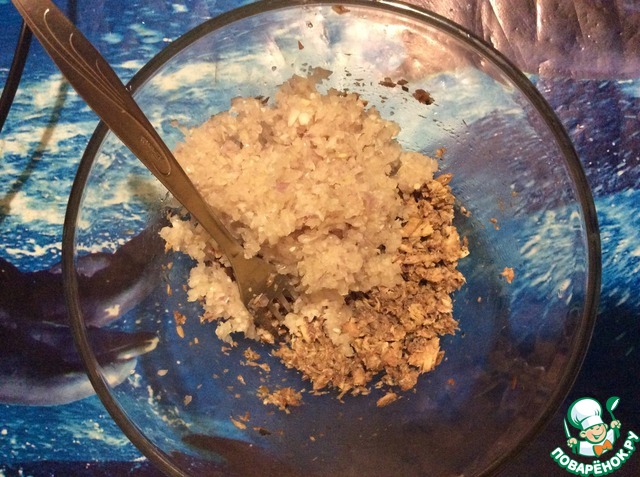 Лук измельчила в блендере, добавила к сайре, перемешала
