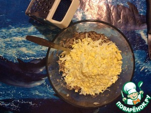 4 вареных яйца очистила, натёрла в блюдо, перемешала