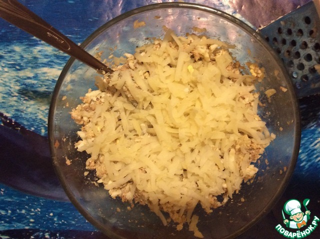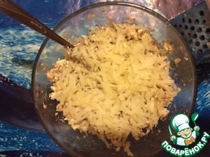 Далее... Очистила вареный картофель и потёрла в блюдо. Перемешала.