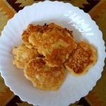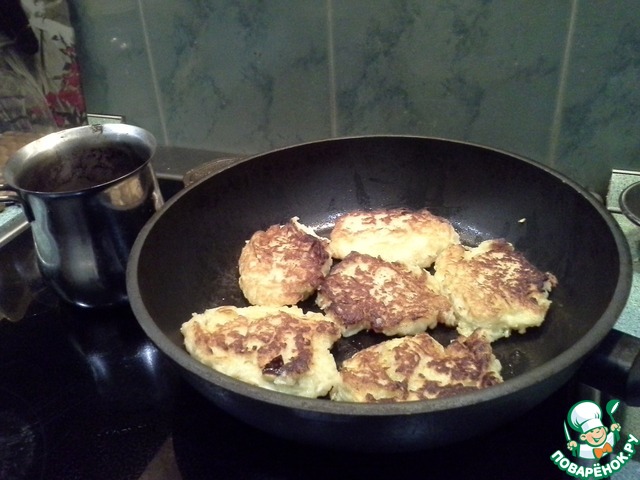 Жарю на подсолнечном или сливочном масле до золотистой корочки. Оладушки получаются слегка "растрепанными" и очень вкусными!