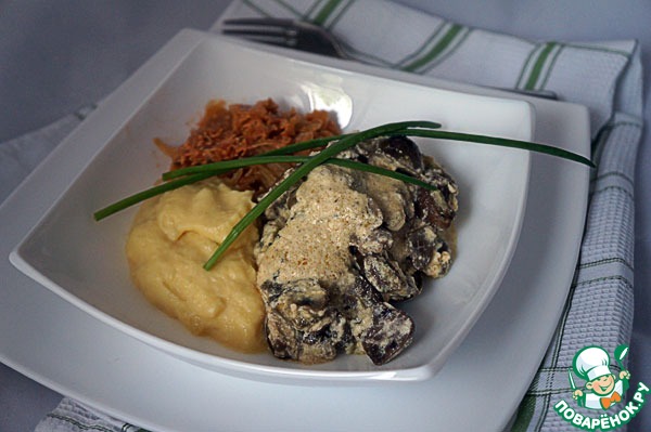 Идеальный гарнир к этому блюду – картофельное пюре и тушеная капуста.