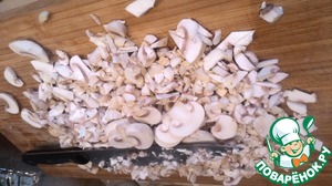• Теперь фаршируем нашу тушку. Аккуратно выкладываем сырно-грибную смесь с укропом в куру.