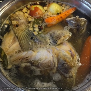 Люблю рыбу......... Частенько головы от карпа,сёмги и форели остаются.... из них и готовлю бульон. Только называю всё это - уха сборная...... Потому как -много всякой рыбы потом добавляю,как процежу бульон.
