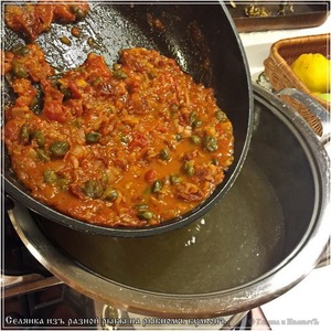 Минут за десять до готовности заправки выложил я в сковороду и каперсы.