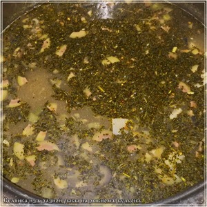 И травки. Можно, конечно, взять зелень свежую и мелко нарубить. Но грядки пока под снегом стоят, а в сельпо покупать…, уж лучше из закромов летне-сушеные достать. Тем более, что там ничего особенного. Базилик, укроп, петрушка, да кинзы немного.